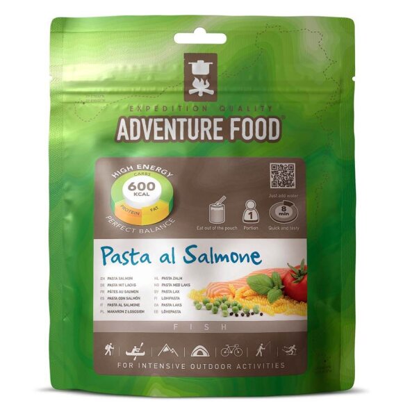 Super lækkert måltid med pasta, laks, ærter og tomat, der giver dig god energi efter en lang dag i det fri. Der skal ikke andet end at tilsættes vand, røres godt rundt og så skal det stå i 10 min. før der er klar til servering. ALLERGENER: